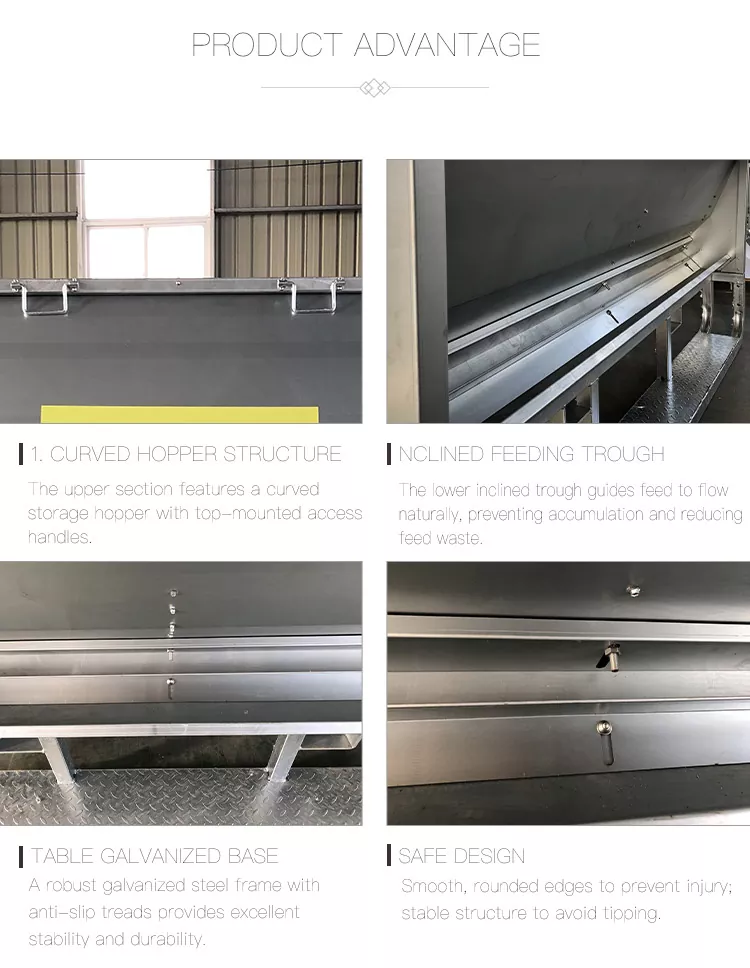 2. ইনক্লাইন্ড ফিডিং ট্রফ: নীচের দিকে ঝুঁকে থাকা ট্রফ ফিডকে প্রাকৃতিকভাবে প্রবাহিত হতে নির্দেশ করে, যা জমে থাকা রোধ করে এবং ফিডের অপচয় কমায়।