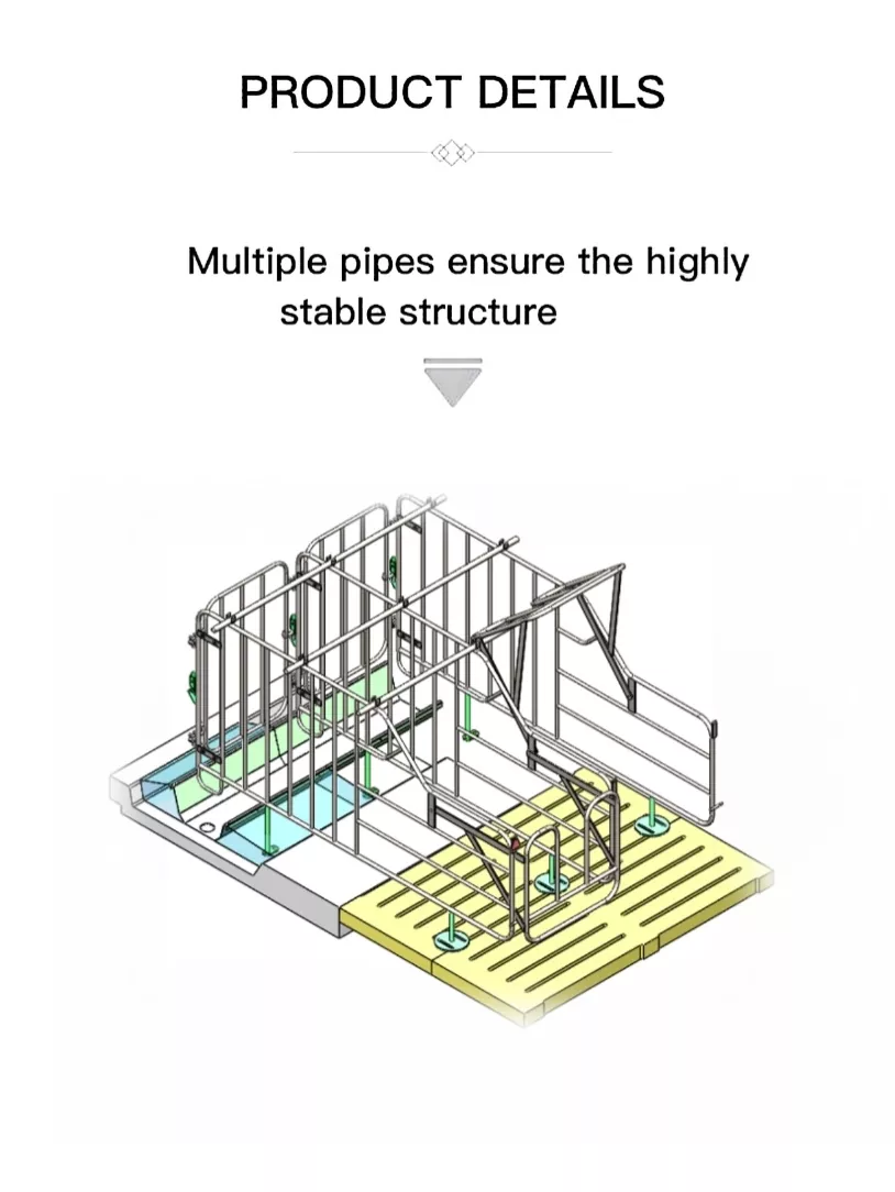 2. অন্তর্ভুক্ত স্টেইনলেস স্টীল ফিড ট্রফগুলি জারা-প্রমাণ এবং পরিষ্কার করা সহজ, দীর্ঘমেয়াদী ব্যবহারের জন্য স্বাস্থ্যবিধি বজায় রাখে।